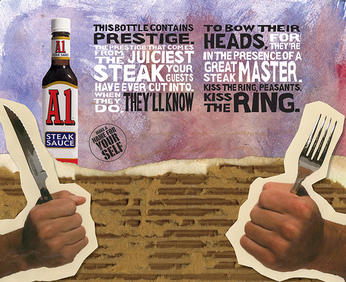 So why are vegetables so threatening to men? Take a look at the advertisements for meat and for vegetables. The ads for meat either feature bold, concise statements (think of the “Go Meat!” campaign of Hillshire Farms) or feature women seductively eating it, or worse, meat looking like women’s body parts. As offensive and stereotypical as they are, these ads tell men that meat makes them who they want to be, or will give them who they should want to have. Ads for vegetables, however, feature children or women, often laughing and noticeably thin (think of the internet compilation “Women Laughing Alone with Salad“). From this, we gather: meat makes you strong and brings you sex, vegetables make you healthy but thin. No wonder the men in our society, who are conditioned to value muscle power and sexual appeal as the ultimate signs of masculinity, reject vegetables for meat.