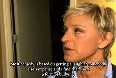 So I encourage you to find your own brand of comedy that doesn’t rely on putting other people down. Though a little hard to find, the tears in your eyes should tell you that it was worth it.