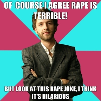 A rape joke is any kind of joke that expects the audience to laugh because a person is being raped, chased, harassed, or otherwise violated. Now, it seems fairly simple to expect that no one would find jokes like this funny. We see rape as a repulsive thing, so why would anyone laugh at it? As it turns out, the answer is a little more complicated than whether or not we find rape abominable.