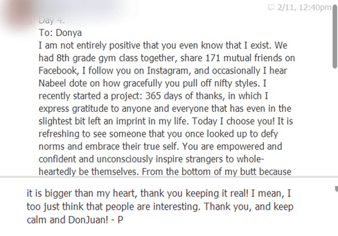I strongly believe that everyone, myself included, can learn a lot from the movement that this simple Facebook message has created. Love more, hate less, and empower those around you.