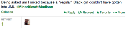 During the meeting, Jackie along with another student discussed tangible solutions that would improve the lives of students of color at JMU. As a large and growing academic institution, it is critical that JMU take necessary steps to engaging with the community about diversity issues. Jackie and organizers of #MinoritiesAtMadison asked that JMU focus on minority recruitment and retention for both students and faculty. Many students noted that they rarely took classes taught by professors of color.