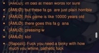 Something I noticed that I thought was funny was that he was the only one talking in text chat. Sometimes people say things like that for a reaction from other people, which no one gave him the satisfaction of a reaction other than leaving the game. At the end of the game, a player on his team that joined after the other players left called him whiny, saying “you need a binky with how much you whine”. I found that comment hilarious, and it left the player speechless for once. They also called the player a “pathetic fuck”, which is true though it is rude. At a certain point, I feel that it’s fair to insult other players but only when they are being so ridiculous and offensive like the one player was. Maybe it’s a hot take, but I do enjoy watching other players communicate using text chat, whether it’s positive or negative.